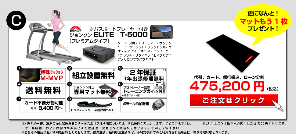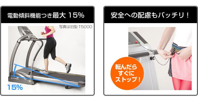 踏み込み、支え、蹴り、という一連の流れの中で発生する負荷の変化を、効率よく、無理なく和らげることが可能です。安心してジョンソン製ルームランナーでのエクササイズをお楽しみ下さい。 |
